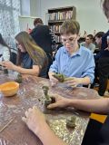 После теоретической части началась самая увлекательная часть мастер-класса – практическая работа. Воодушевлённые рассказом Елены Ивановны, девятиклассники с большим энтузиазмом принялись за лепку своих игрушек.