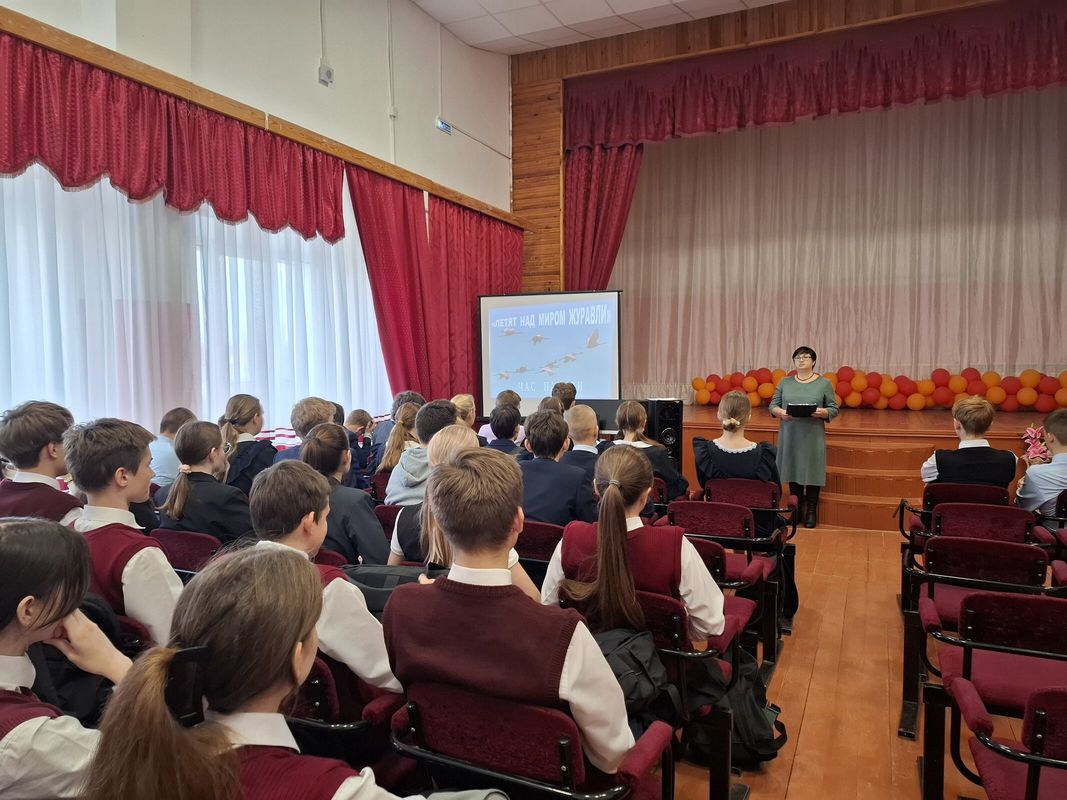 В рамках Пушкинской карты сотрудники центральной библиотеки для учащихся МОУ «Лицей» провели час памяти «Летят над миром журавли», посвящённый Дню белых журавлей. В ходе мероприятия ведущие рассказали о жизни Расула Гамзатова и его знаменитой песне «Журавли», о происхождении праздника и его символе.